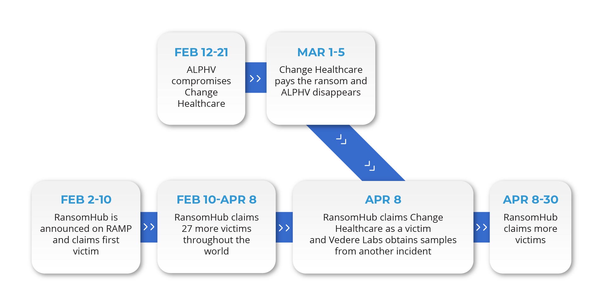 On February 12, ALPHV ransomware affiliate “Notchy” compromised Change Healthcare, a large payment management company connecting more than 1.6 million health professionals, 70,000 pharmacies and 8,000 healthcare facilities in the US healthcare system.